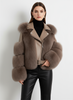 Faux Fur Jacket Patchwork Long Sleeve Pu Leather Fluffy