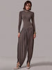 Elevate your style with this sexy slim-fit patchwork jumpsuit featuring draped long sleeves. Designed to flatter your silhouette, it combines modern elegance with a unique patchwork detail for a bold, confident look. Perfect for standout occasions and evening events.