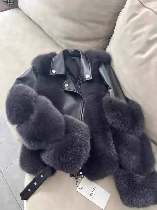 Faux Fur Jacket Patchwork Long Sleeve Pu Leather Fluffy