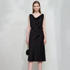 Elegant Black Swing Neck Midi Dress with Thin Belt