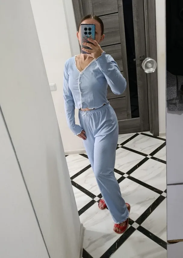 Lace Pijama Loungewear: 2-Piece Autumn/Winter Shirt & Pant Set