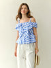 Asymmetric checkered blouse featuring bold geometric print. Modern silhouette with unique design details. Perfect for contemporary style. Shop now at LORAN STORE.