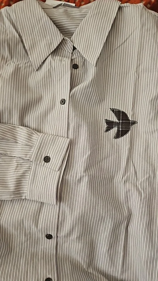 Add charm to your look with the Plus-Size Birds Appliqué Checkered Stripe Shirt, featuring unique bird appliqués and a flattering checkered stripe design for stylish everyday wear.
