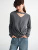 Luxurious plus-size sweater featuring a flattering V-neckline and distinctive floating ribbon detailing for added visual interest. Soft, cozy knit fabric provides warmth and comfort throughout the season. Effortlessly chic piece that elevates any casual wardrobe.